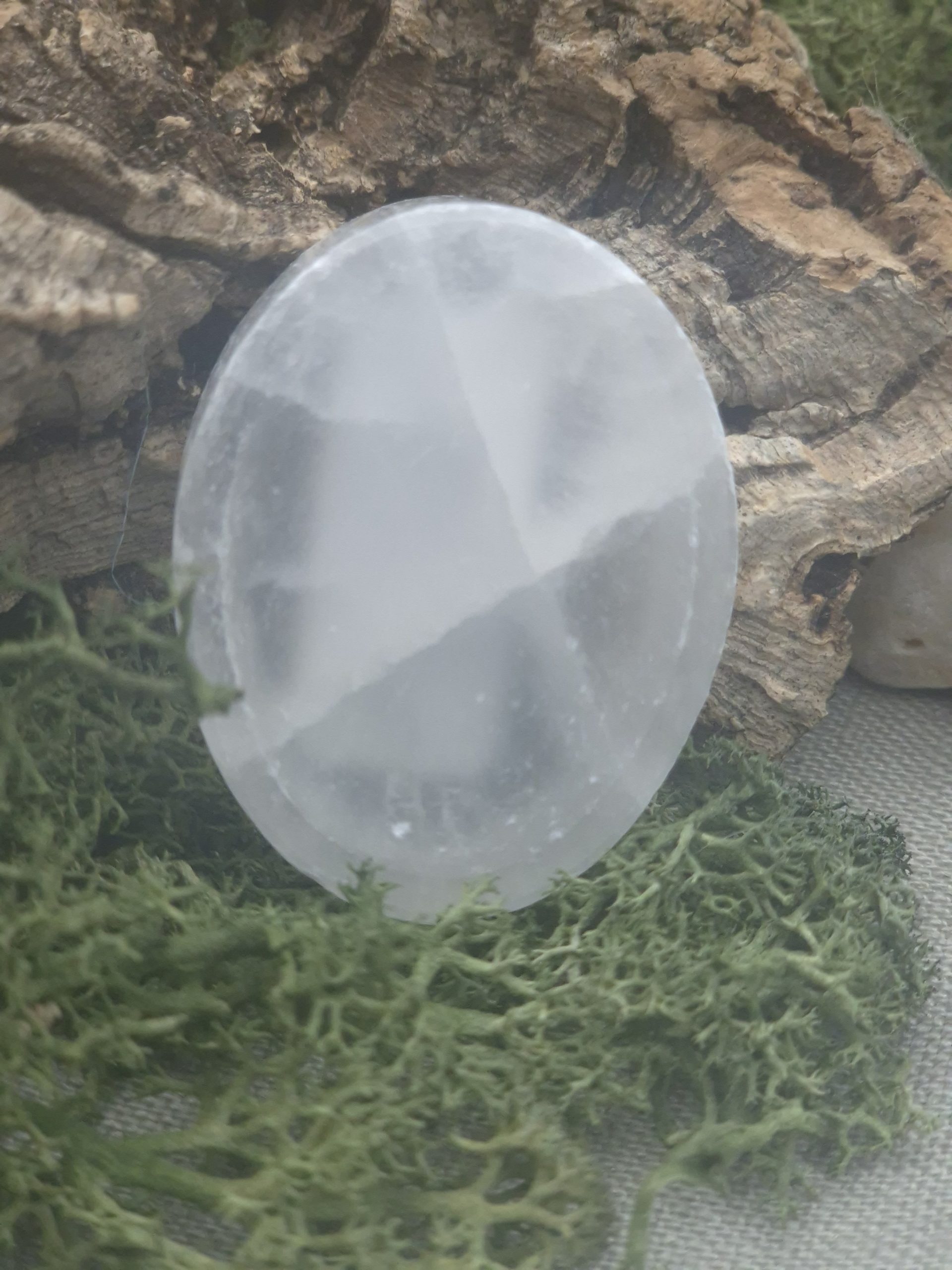 Selenite is known for its cleansing energy. It’s often used to clear stagnant energy, refresh the aura, and bring mental clarity without heaviness. Holding a Selenite thumb stone during breathing exercises or meditation can help steady racing thoughts and create a sense of energetic reset.